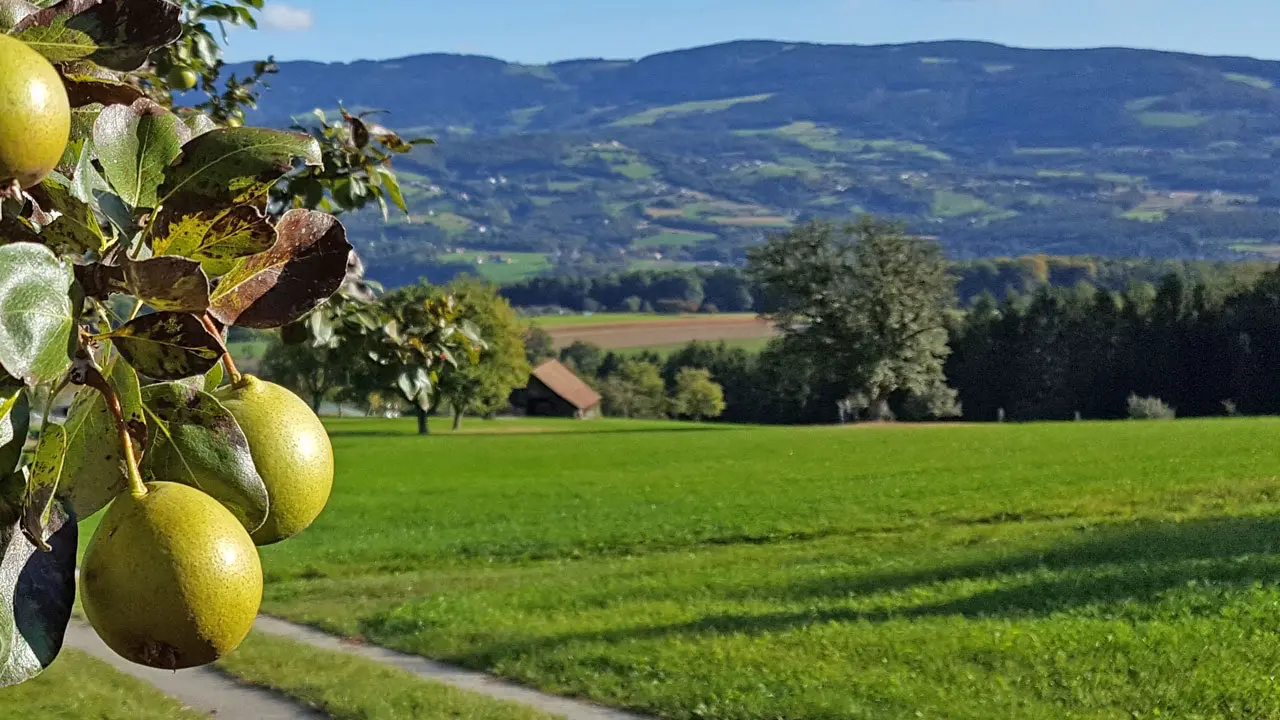 Known as the Austrian Fruit Garden – East Styria is known as Austria’s “apple country.” Its crisp, flavorful apples and artisanal cider are prized for their natural sweetness and balance. Apples make an excellent snack, while cider can elevate a meal with its refreshing tang. Additionally, only in Pöllau Valley: The Hirschbirne is an old Styrian variety of pear which main cultivation area remains in the beautiful nature park Pöllau Valley, in the Eastern Styria.